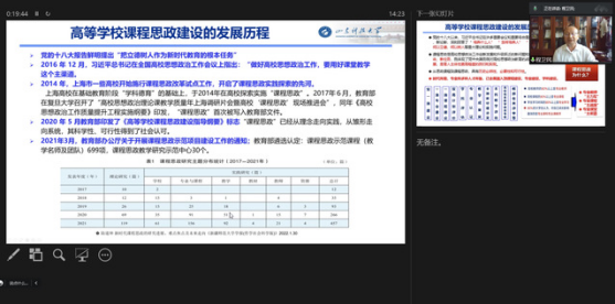 代表教师还就2021版教学大纲新要求、专业课程线上线下混合式教学、案例式教学等新形势教学方式表达了观点,各任课老师对课程难点和共性问题等内容进行了深入讨论。此外,各专业老师还同步观看了国家教学名师、两次国家教学成果二等奖获得者程卫民教授“立足专业特色、坚持立德树人,构建高质量课程思政体系”线上讲座,报告围绕全面落实教育部课程思政建设任务要求,从重构科学合理的教学体系与课程体系、建设胜任善任的课程思政教师队伍、健全促进课程思政持续发展的体制机制三个维度,探讨了建设高质量专业课程思政的路径,报告内容详实,老师受益匪浅,表示一定在以后的教学中,加强教学技巧培养,提高教学成果,在课程建设过程中要不断深化价值引领,强化爱国主义教育,提升安全学子的使命当担和工匠精神。